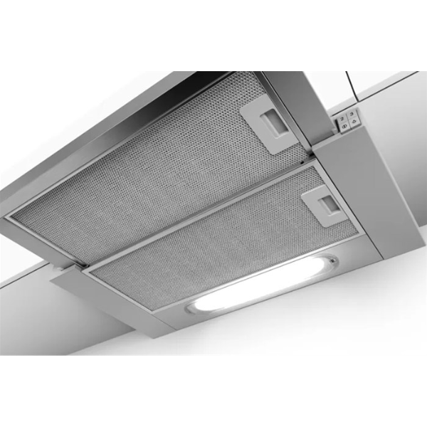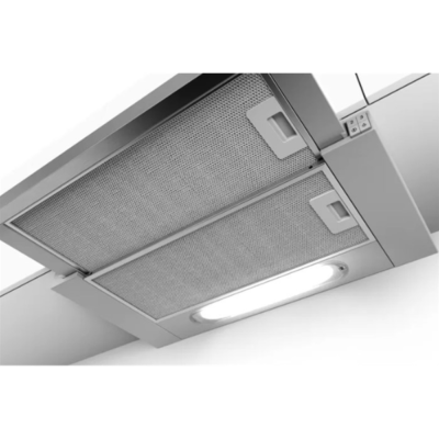 Sản phẩm có thiết kế âm tường, không chiếm quá nhiều diện tích, giúp không gian trở nên gọn gàng, hiện đại. Phần vỏ máy bên ngoài được làm từ inox không gỉ, không bám vân tay, bền bỉ và dễ lau chùi. Lưới lọc bằng nhôm chắc chắn, tháo lắp dễ dàng và có thể vệ sinh bằng máy rửa chén.